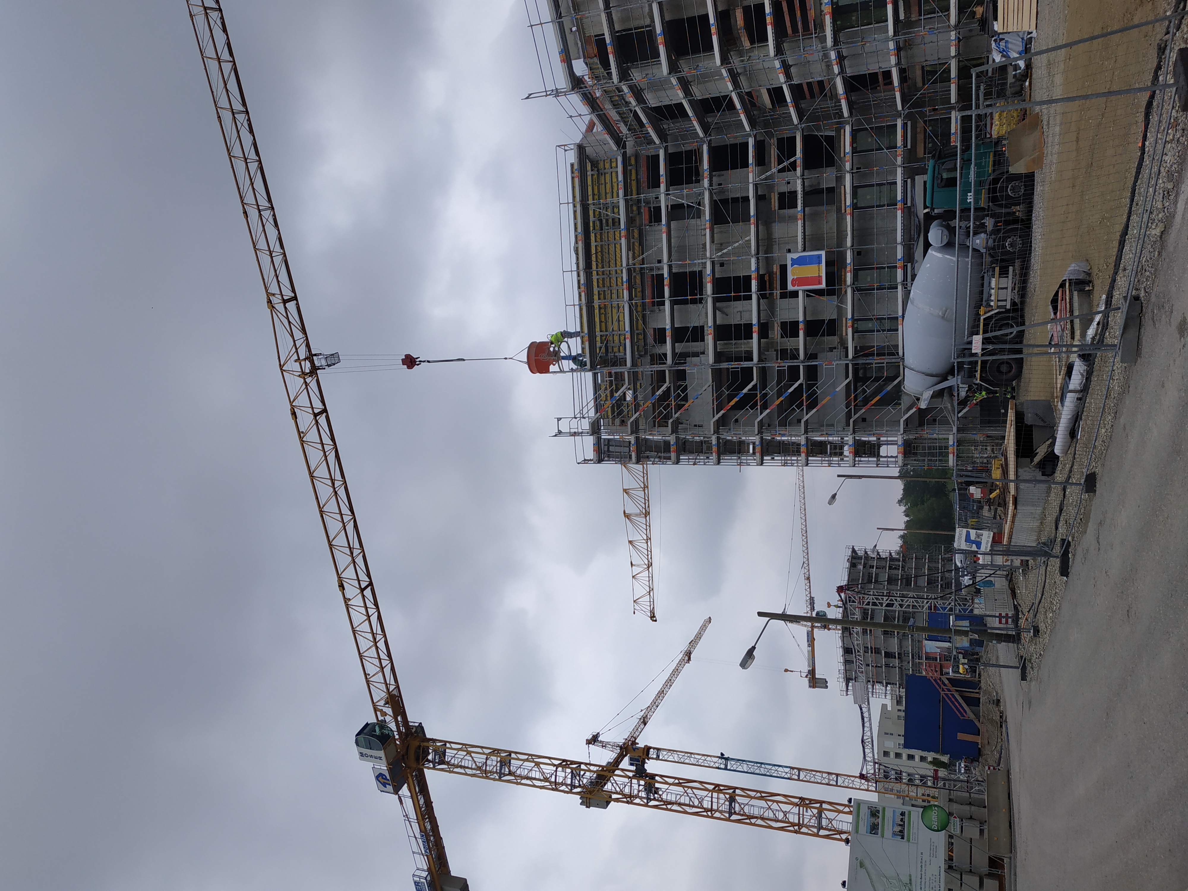 Beton einbringen: Fahrmischer, Kran und Silo