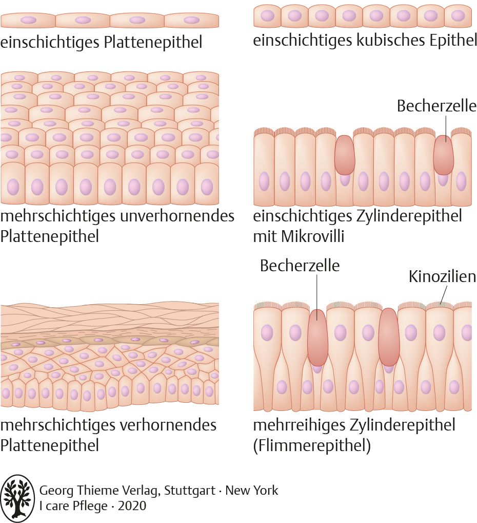 I Care Anatomie | Grundlagen | Einteilung der Oberflächenepithelien (Grafik)