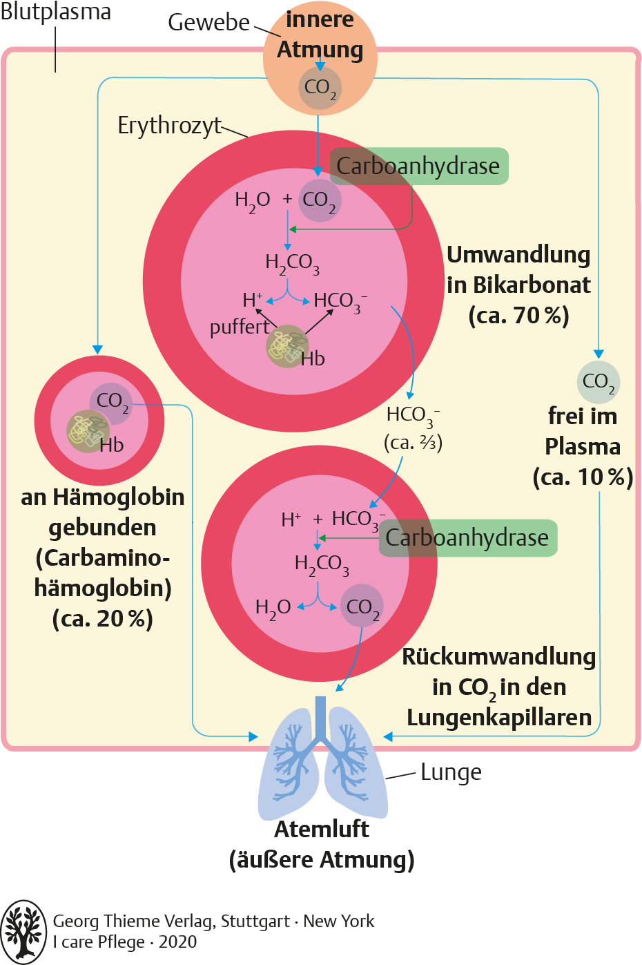 I Care Anatomie | Organsysteme | Transport von Kohlendioxid im Blut (Grafik)