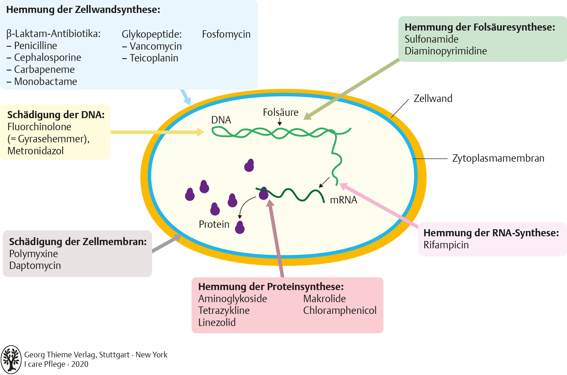 I care Krankheitslehre | Grundlagen | Angriffspunkte der Antibiotika (Grafik)