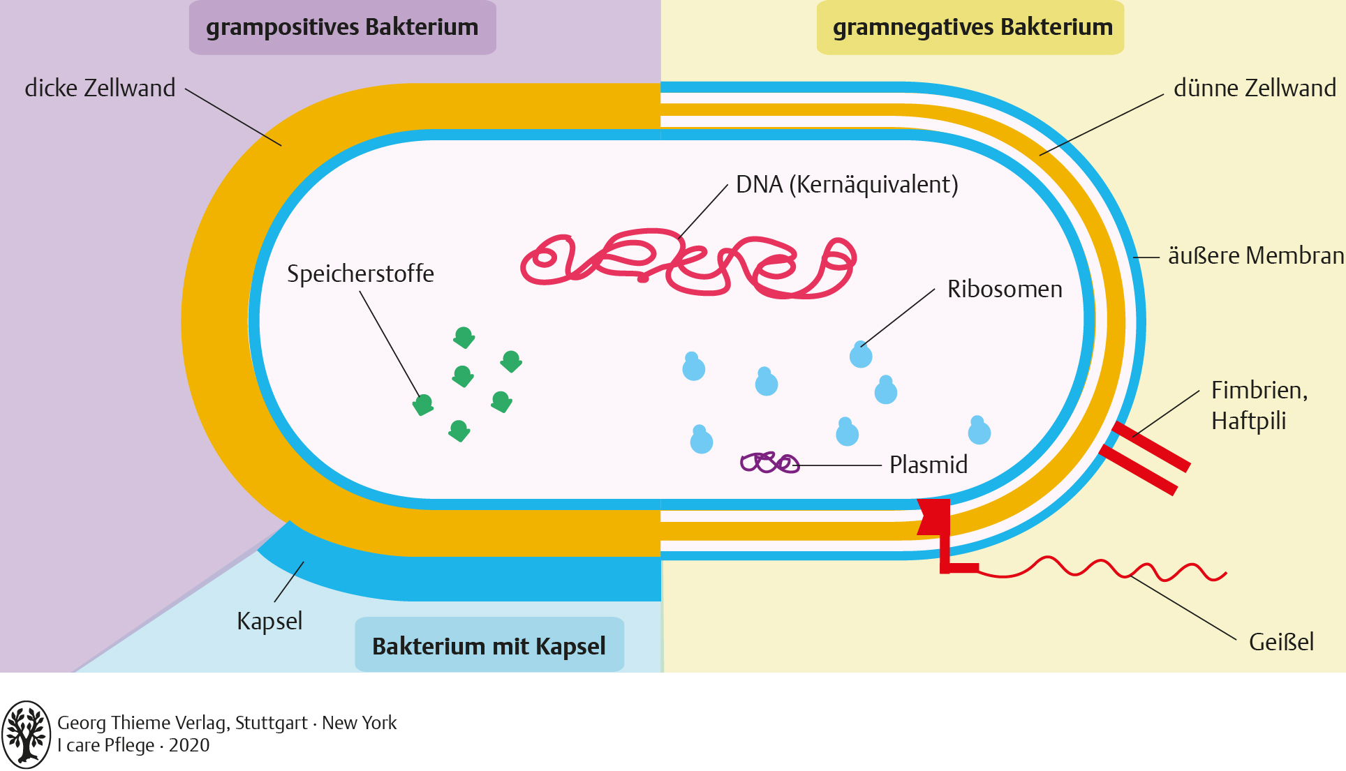 I care Krankheitslehre | Grundlagen | Aufbau einer Bakterienzelle (Grafik)