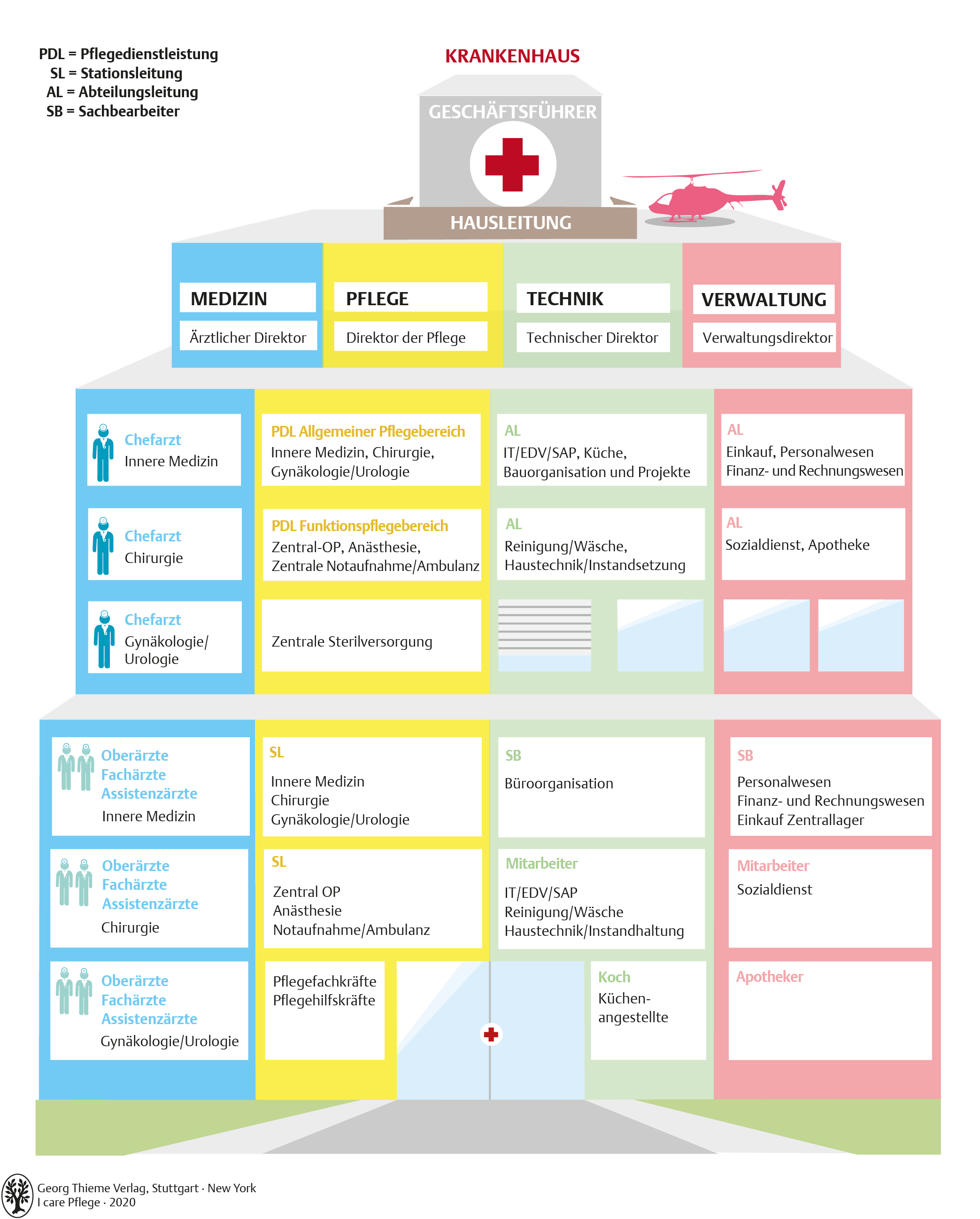 I care Pflege | Grundlagen des Pflegeberufs | Aufbau eines Krankenhauses (Grafik)