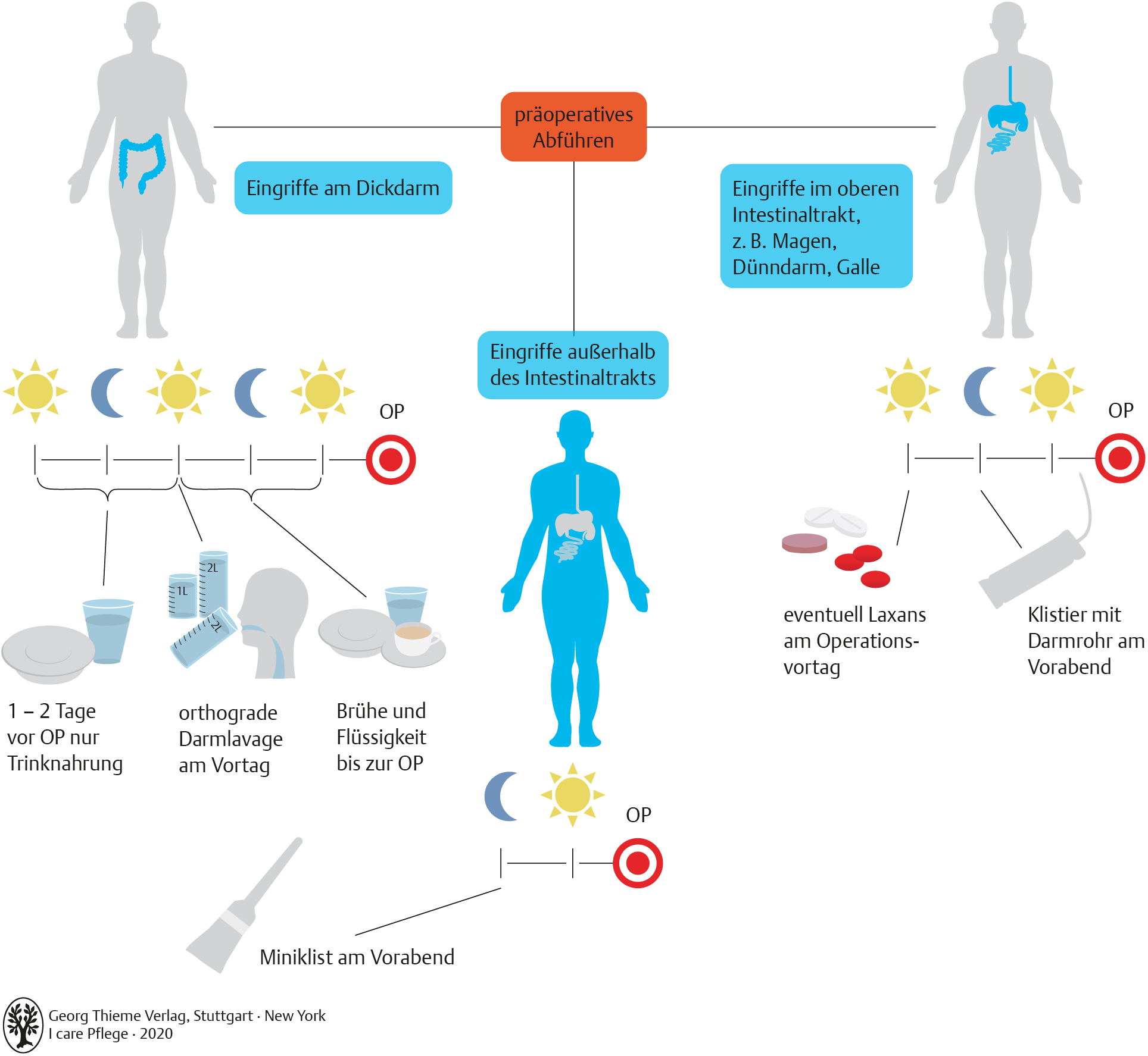 I care Pflege | Unterschiedliche Pflegesettings | Präoperatives Abführen (Grafik)