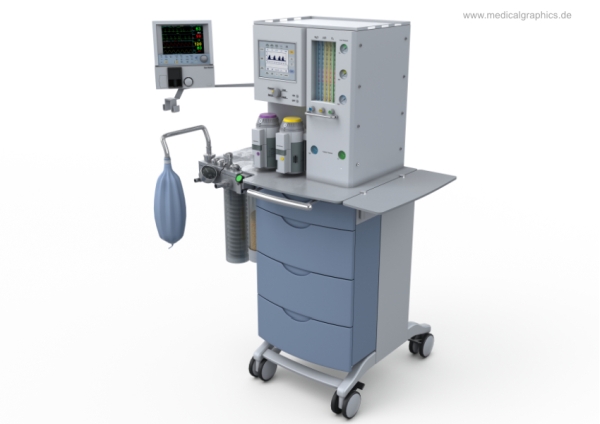 Illustration eines mobilen Narkosegeräts für Operationen.