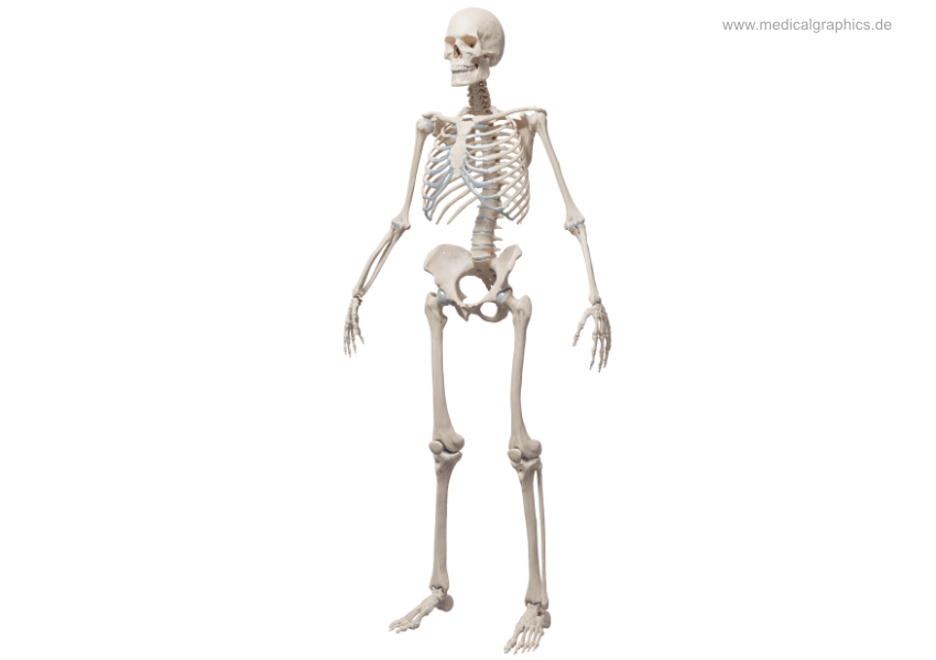 Illustration eines menschlichen Skeletts von seitlich-vorne.